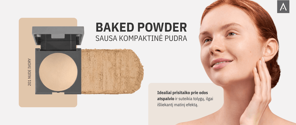 BAKED POWDER idealiai prisitaiko prie odos atspalvio, tinka visiems odos tipams ir suteikia tolygų, ilgai išliekantį matinį efektą.